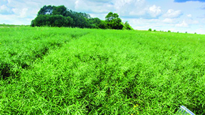 Выращиваем яровой рапс как по технологии с применением гербицида на основе имидазолинонов, так и по классической. Во втором случае первая обработка всходов выполняется такой смесью (в расчете на 1 га): гербициды Галион, 0,3 л + Эсток, 25 г + инсектицид Борей Нео, 0,2 л + ПАВ Адью, 0,2 л + Акварин 5, 2 кг + ТекнокельАминоБор, 1 л. Хотя Эсток и снимает проблемы со многими крестоцветными сорняками, но если они у вас есть, то борьбу с ними все же лучше вести на поле предшественника.