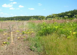 Эффективность 90 % показали варианты 6 и 8, причем в первом случае продолжалось интенсивное зарастание участка злаковыми травами. В вариантах 3 и 5 гибель борщевика Сосновского составила 60 - 70 %. Лучшее состояние участка было в варианте 5, так как здесь снова прослеживалось избирательное действие гербицидов и активно шло залужение злаковыми травами.