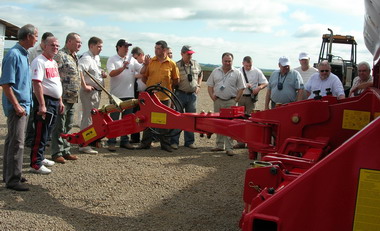 Вниманию членов делегации были представлены сеялки, рекомендованные для рынка России и Украины. Модель TDNG 420 предназначена для посева пшеницы, ячменя, сои, рапса, проса, сорго и других зерновых культур. Она выполняет все основные операции и соответствует требованиям большинства регионов вышеуказанных стран, оснащена прочными балками и стойками, очень проста в настройке как гидравлической системы, так и других органов. В этой сеялке используется двухдисковый сошник, который не заходит так глубоко, как однодисковый, но, как показал многолетний опыт фермеров Бразилии, Аргентины и Парагвая, обеспечивает более быстрое и дружное появление всходов и лучшее развитие растений в период вегетации. Особенно это видно на посевах пшеницы, где разница составляет примерно 15 - 20 %. По мнению производителей, для тех, кто засевает 80 - 90 % площадей пшеницей, эта модель сеялки является самой оптимальной. Также эта машина может быть оснащена дополнительным устройством, позволяющим в считанные минуты перевести ее в транспортное положение и наоборот без использования ручного труда. предназначена для посева пшеницы, ячменя, сои, рапса, проса, сорго и других зерновых культур. Она выполняет все основные операции и соответствует требованиям большинства регионов вышеуказанных стран, оснащена прочными балками и стойками, очень проста в настройке как гидравлической системы, так и других органов. В этой сеялке используется двухдисковый сошник, который не заходит так глубоко, как однодисковый, но, как показал многолетний опыт фермеров Бразилии, Аргентины и Парагвая, обеспечивает более быстрое и дружное появление всходов и лучшее развитие растений в период вегетации. Особенно это видно на посевах пшеницы, где разница составляет примерно 15 - 20 %. По мнению производителей, для тех, кто засевает 80 - 90 % площадей пшеницей, эта модель сеялки является самой оптимальной. Также эта машина может быть оснащена дополнительным устройством, позволяющим в считанные минуты перевести ее в транспортное положение и наоборот без использования ручного труда.