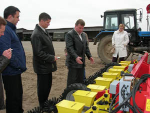 Плуги приобретаем фирмы «Квернеланд» (Норвегия), «Кун» (Франция) и разбрасыватели удобрений этой же фирмы, а также фирмы «Амазоне». Два агрегата заменяют 12 РУМов, качество внесения отличное. И сеялки у нас от «Амазоне». Если позволяет длина гона, каждой из них за 12 ч можно качественно засеять 60 га. При этом не требуется проведения предварительной обработки почвы: за один проход осуществляются и культивация, и сев, и уплотнение почвы.
