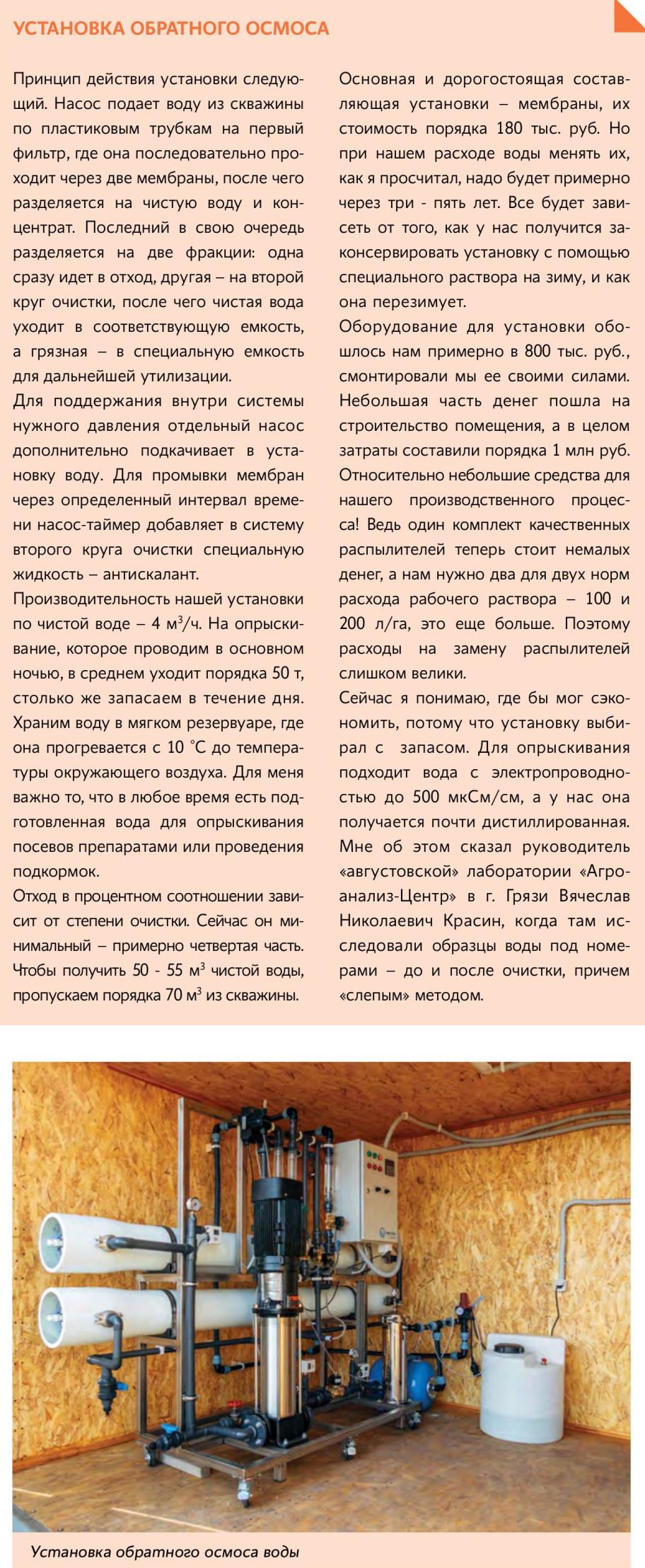 В этом на собственном опыте убедился Алексей Сергеевич РЫБЯНЦЕВ, директор ООО «Варваровка» Богучарского района Воронежской области, обустроив растворный узел с установкой обратного осмоса воды.