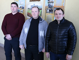Слева направо: агроном Р.Р. Устинович, В. В Якутенок, заместитель начальника технологического отдела Торгового дома «Августа» И. И. Яцкевич