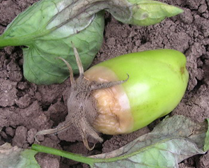 Мягкая бактериальная гниль плодов, стеблей и корней перца вызывается возбудителем Pectobacteriumcarotovorum (Jones) Waldee. Заболевание сопровождается изменением окраски и пустотелостью стебля, хлорозом и некрозом листьев, а возле плодоножки – появлением вдавленных водянистых участков коричневого цвета. В условиях теплой и влажной погоды заражение растений происходит через повреждения и ранения на стеблях.