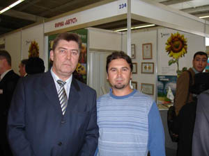На снимках: у стенда фирмы «Август» на выставке «Агропромышленная неделя» всегда было многолюдно; награда «Августу» – Золотая медаль; представитель фирмы «Август» в Иркутске А. Николаев вместе с одним из наиболее крупных партнеров компании, руководителем ООО «Саянский бройлер» С. Еременко.