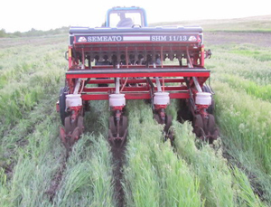 Используя сеялку прямого посева SHM-11/13 («Semeato»), мы выполнили бинарный посев подсолнечника прямо в «зеленый ковер» сорняков и падалицы озимой пшеницы. Подсолнечник высевали с нормой высева 55 тыс. всхожих семян на 1 га, озимую вику – 1 млн всхожих семян на 1 га.