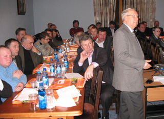С достижениями и перспективами развития фирмы «Август» собравшихся познакомил ведущий менеджер компании М. В. Боровой. Именно он в 2005 году выступил организатором технологического сопровождения программы развития производства отечественного пивоваренного ячменя банка «Авангард».