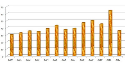 На диаграмме (рис. 1) приведены данные ФАО по урожайности кукурузы на Украине за последние 10 лет. Она достаточно стабильно росла, а вот в 2012 году произошел серьезный обвал, потому что в наши планы и технологии вмешался главный ограничивающий фактор – дефицит влаги.