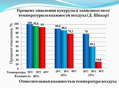 Рис. 2. Зависимость опыления кукурузы от температуры и влажности воздуха