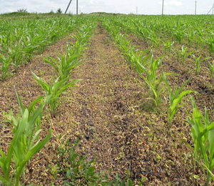 Подписи: Поле кукурузы, обработанное Дублоном голд Поле кукурузы в контроле без обработки