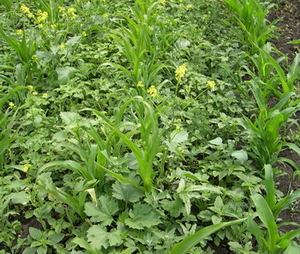 Многие хозяйства уже включили Дублон голд в систему защиты кукурузы и из года в год получают отличные результаты. Например, в 2010 году препарат применили в СПК колхоз-племзавод «Казьминский» Ставропольского края. Поле кукурузы было сильно засорено двудольными сорняками, взошедшими после сильных дождей, прошедших перед обработкой. В видовом составе преобладали амброзия полыннолистная, марь белая, щирица запрокинутая, канатник Теофраста, подмаренник цепкий, горец почечуйный, падалица подсолнечника, горчица полевая, щетинники, куриное просо, всего 63 шт/м2. При обработке двудольные сорняки находились в фазе развития двух-четырех пар листьев, подмаренник – в фазе двух мутовок. Злаковые сорняки достигали фазы трех-четырех листьев.