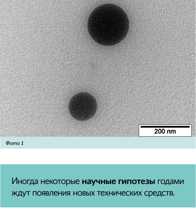 На фото, полученных с использованием данного микроскопа, видно, что препарат при добавлении его в воду в концентрациях 0,015 % образует наноэмульсию, состоящую из отдельных сферических наномицелл размером от 80 до 500 нм. Внутри каждая мицелла имеет полость (внутреннее пространство) размером 20 - 30 нм, которая предположительно заполнена смесью действующих веществ в растворителе.