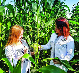 В. Шейкина с Е. Шек обследуют поле кукурузы