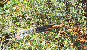 Экономия воды на подземной трубке еще выше, чем при обычном капельном поливе. По мере разрастания корневой системы в глубину мы проводим поливы все меньшими экспозициями, поскольку все корни находятся в непосредственной близости к капельницам. Подземная система полива позволяет резко увеличить ширину полосы промочки. При укладке трубки с интервалом 150 см зоны промочки смыкаются полностью (фото 5). И часто при этом поверхность почвы остается сухой не только в междурядьях, но и в рядах, что сводит к нулю потери влаги на физическое испарение и попутно упрощает борьбу с сорняками.