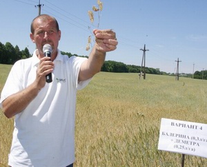 На опытных участках были продемонстрированы результаты действия нескольких баковых смесей гербицидов: деметра + гранстар, балерина + магнум, балерина + деметра. Данные схемы были предложены для того чтобы показать новые продукты – балерина и деметра, появившиеся в ассортименте компании в 2010 году. Поле, отведенное под опыты, введено в севооборот недавно, так что препаратам было с чем бороться, и баковые смеси сработали на достаточно высоком уровне. Хотя жаркая погода и внесла свои коррективы. Некоторые сорняки погибали и на контроле, чего не скажешь о мари белой, которая вопреки суровым погодным условиям оставалась зеленой. С овсюгом, который тоже является в хозяйстве проблемой, успешно справился граминицид ластик 100, примененный в норме расхода 0,6 л/га.