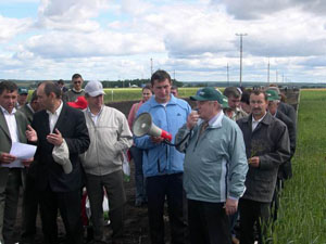 Около 120 руководителей и агрономов приамурских хозяйств посетили 25 июля ЗАО «Амурский партизан» и ОАО «Димское» Тамбовского района, где познакомились с опытами по испытанию схем защиты яровой пшеницы и сои препаратами различных фирм.