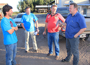 Александр Щербаков (крайний справа) и глава Нижегородского представительства «Августа» Николай Самойлов (второй слева) беседуют с аргентинскими фермерами в одном из местных хозяйств