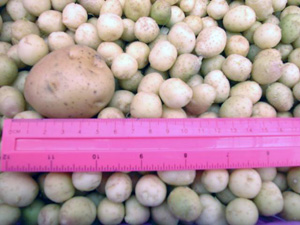 Вес одного мини-клубня – в среднем всего около 5 - 7 г, и на 1 га в первый год их требуется 120 тыс., которые обеспечивают средний урожай 14 т/га. Урожай может быть и намного больше, до 30 т/га и выше, однако на комбинате применяют разнообразные методы искусственной остановки роста для увеличения выхода семенной фракции. В частности, в фазе цветения выполняют пробную копку, и если удельный вес семенных клубней составляет 80 %, то ботву уничтожают, чтобы клубни не перерастали. Подобные методы хорошо известны семеноводам. Их применяют и в последующие сезоны выращивания элитных семян.