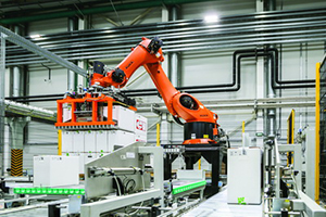 В цехе по производству полимерной тары только на снижении логистических операций производительность труда по сравнению со стандартными технологическими схемами повышается в четыре раза. Здесь четыре коэкструзионно-выдувные машины способны за сутки выпускать около 53 тыс. многослойных полимерных канистр. Каждую из машин обслуживает один оператор. Готовые канистры по конвейерам транспортируются на автоматический склад готовой продукции, рассчитанный на хранение 180 тыс. канистр. Складирование и выдача готовой продукции проходит с помощью автоматизированных средств перемещения по четырем плоскостям склада и трех картезианских роботов. Склад обслуживает один оператор.
