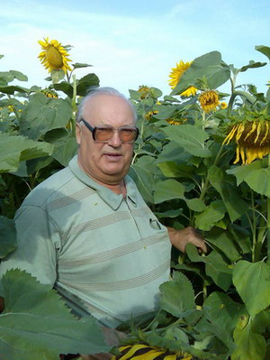 На снимке: Г. А. Желудков на поле раннеспелого сорта подсолнечника Саратовский 85