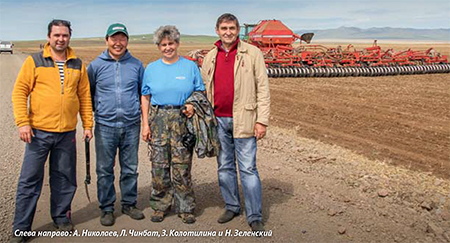 — И мы это сделали первыми в Монголии. Для нас пахота – это просто бедствие. В степи, на огромных открытых пространствах ветра´ – дело обычное. Весной они от 20 до 30 дней обязательно дуют, уносят почву. Такие пыльные бури бывают, что машины останавливаются на дорогах, не могут проехать из-за пыли и наносов, поэтому мы давно поняли, что нужен прямой посев. Там, где на полях стерня, все нормально. Я думаю, что это самая успешная, перспективная технология. И мы стараемся выгодно использовать ее, No-till у нас сейчас примерно на 20 % площадей. Теперь, чтобы внедрить его на больших площадях, мы планируем сформировать севообороты вместе с российским ученым Николаем Андреевичем Зеленским. Уже завезли донник, люцерну, эспарцет, будем вводить и другие культуры, преимущественно кормовые, в том числе и кукурузу.