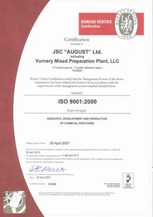 Уважаемый читатель!Как мы уже сообщали, в апреле наша компания успешно провела сертификационный аудит на соответствие корпоративной системы менеджмента качества международному стандарту ISO9001:2000. «Август», как и подобает многолетнему лидеру российского рынка пестицидов, стал первой и пока единственной отечественной специализированной компанией по производству пестицидов, прошедшей подобную сертификацию. О том, что означает эта сертификация для «Августа», зачем компания решилась на это, рассказывает директор фирмы «Август» по стратегическому развитию Людмила ГОЛУБКОВА.