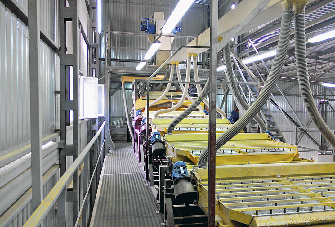 Он устанавливается над завальной ямой или приемным бункером и предназначен для удаления крупного сора. Крупность сора и производительность приема определяются пропускной способностью трех ситовых корпусов общей площадью 21 м2. Они приводят в колебание вибраторы, при этом можно регулировать вектор колебания и его импульс, а также частоту. Сор сходит с ситовых корпусов в горизонтальный шнек и подается к вертикальному для сбора в бункере.