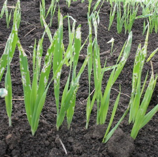 В фазе первого листа была определена площадь листовой поверхности на разных вариантах. В 2009 году на яровом ячмене потеря листовой поверхности на контрольном варианте достигла 40 % по сравнению с опытными участками, а на яровой пшенице – 25 %. Обработка семян табу в норме расхода 0,4 и 0,5 л/т позволяет обеспечить защиту посевов яровых зерновых в критический период роста (от 1 до 5 листьев).