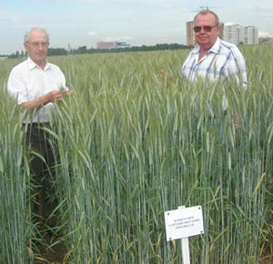На снимках: Н. Г. Пома (справа) и ведущий научный сотрудник лаборатории А. В. Сергеев на делянках конкурсного сортоиспытания; сорт озимой тритикале Немчиновский 56.
