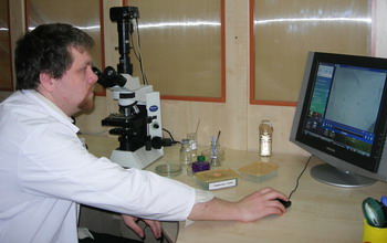 Микроскоп такого класса, как у нас, чаще всего применяют в медицине. Главное его достоинство – уникальное программное обеспечение с выводом изображения в режиме онлайн на монитор, с возможностью фото- и видеозаписи высокого разрешения на компьютер. Этот микроскоп позволяет делать измерение размеров спор с точностью до 1 нанометра, что имеет огромное значение при идентификации спор, точного определения нематод и т. д. С помощью «Олимпуса СХ41» мы делаем уникальные видеоматериалы, например, процесс питания нематод. Человек, один раз увидевший, с какой скоростью нематоды уничтожают растение, уже никогда не будет сомневаться в необходимости обработок.