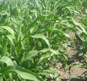 Было принято решение провести гербицидную обработку Дублоном голд, 0,07 л/га в баковой смеси с Балериной, 0,3 л/га. Опрыскивание провели на 18-й день вегетации культуры. Эффективность примененных препаратов Н. Лекомцева оценила «на пять с плюсом», они обеспечили полную чистоту посева. В дальнейшем кукуруза развивалась без какого-либо соседства с сорняками. И развивалась, благодаря хорошей заправке и подготовке почвы, быстро – уже на 42-й день вегетации растения имели хорошо развитый мочковатый корень, 11 - 12 листьев и высоту 110 - 115 см. Дальше пришла засуха, но кукуруза, тем более посеянная по глубокой обработке почвы с обильным внесением органики, которая «держит» влагу, перенесла ее намного лучше, чем горох. Разве что листья немного скручивались, сокращая потери влаги растениями.