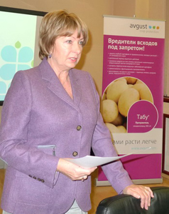 Т. Н. Погосова, заместитель руководителя ФГУ «Россельхозцентр», Кострома: «К сожалению, немногие в нашей области используют препараты фирмы «Август», нам хотелось бы изменить эту ситуацию. Тем более, сейчас у нас появилась возможность реализовывать пестициды, поэтому мы хотим наладить сотрудничество с компанией. Для нас это новое направление работы, поэтому я приехала на эту встречу, чтобы понять, как все организовать, пообщаться с теми, кто уже много лет всем этим занимается. Судя по тому, что я услышала на сегодняшнем совещании, у нас неплохие перспективы. Надеюсь, что с нашей помощью продукция «Августа» займет достойное место в Костромской области».