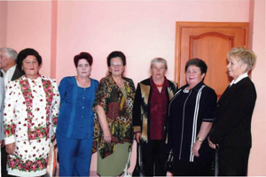 На снимке внизу: Н. Обыскалова (в центре) среди коллег по работе.
