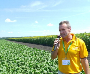 Для меня и всех специалистов и работников нашего хозяйства подготовка опытных участков для этого Дня поля, конечно, принесла немало хлопот, но и дала огромный опыт, которого больше нигде не получишь. Под опыты была отведена большая площадь – 9 га под зерновые культуры, 26 – под подсолнечник, 19 – под кукурузу и 6 га – под сахарную свеклу. И все это – поделяночно. Мы показали 100 гибридов подсолнечника, 80 – кукурузы, 60 – свеклы и 88 сортов яровых зерновых и озимых. Одних только табличек поставили 350! Огромный труд!