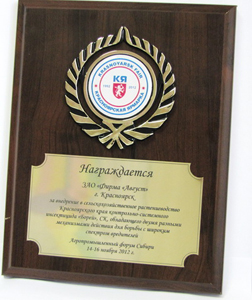По итогам работы выставки компания «Август» за представленную экспозицию новейших средств защиты растений была отмечена высшей наградой – «Серебряной звездой».