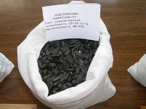 Мы культивируем три сорта: высокомасличный (48 - 50 %) Сибирский 97, немного уступающий ему по масличности Енисей – 41 - 42 %, и сорт Кулундинский, масличность которого около 36 %, но он может давать 350 - 450 ц/га силосной массы, его широко используют животноводы на силос в смеси с кукурузой.