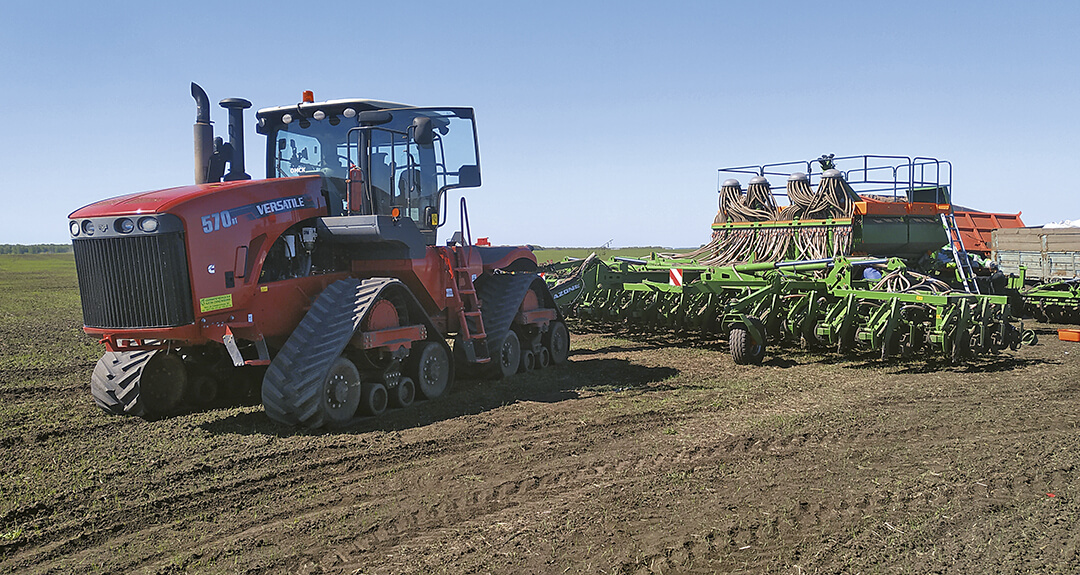 Мощный трактор «Buhler Versatile Delta Track» с посевным комплексом «Amazone DMC»