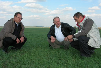 На снимках: Ю. А. Попов; Н. В. Аливанов; руководители ОАО «Вурнарский мясокомбинат» и С. Н. Милицков (справа) на поле озимой пшеницы.