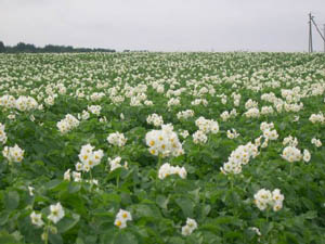 Первое же поле, на котором остановилась колонна – 110-гектарное поле картофеля в ЗАО «Агротехника» – произвело на всех огромное впечатление. Несмотря на неблагоприятные погодные условия нынешнего сезона на Северо-Западе России, картофель смотрелся прекрасно, видовой урожай клубней не ниже 300 ц/га. Как пояснил главный агроном хозяйства Юрий Ревчук, здесь выращивают только сорта местной селекции СЗНИИСХ (по его наблюдениям, они лучше голландских противостоят фитофторе), нынче лучше всех показали себя сорта Елизавета и Луговской. Под картофель внесли полные нормы удобрений, защитили от сорняков с помощью гербицида лазурит, против болезней провели обработки метаксилом и орданом. Инсектицидных обработок не потребовалось.