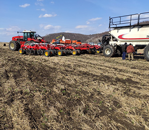 К тому же эти сеялки позволяют вносить при посеве различные удобрения раздельно в рядок и в междурядье, и вообще они способны выполнять практически все пожелания агронома, и эти особенности мы используем максимально. А дисковые сеялки к тому же могут вести прямой посев в почву любой твердости, практически в асфальт, и при любом количестве пожнивных остатков. Очень ценное качество сеялок «Bourgault» – огромный бункер, одной заправки которого хватит на полдня работы. Так что они сразу всем понравились.