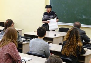 Л. М. Нестерова проводит лекцию по химии пестицидов в МГУ